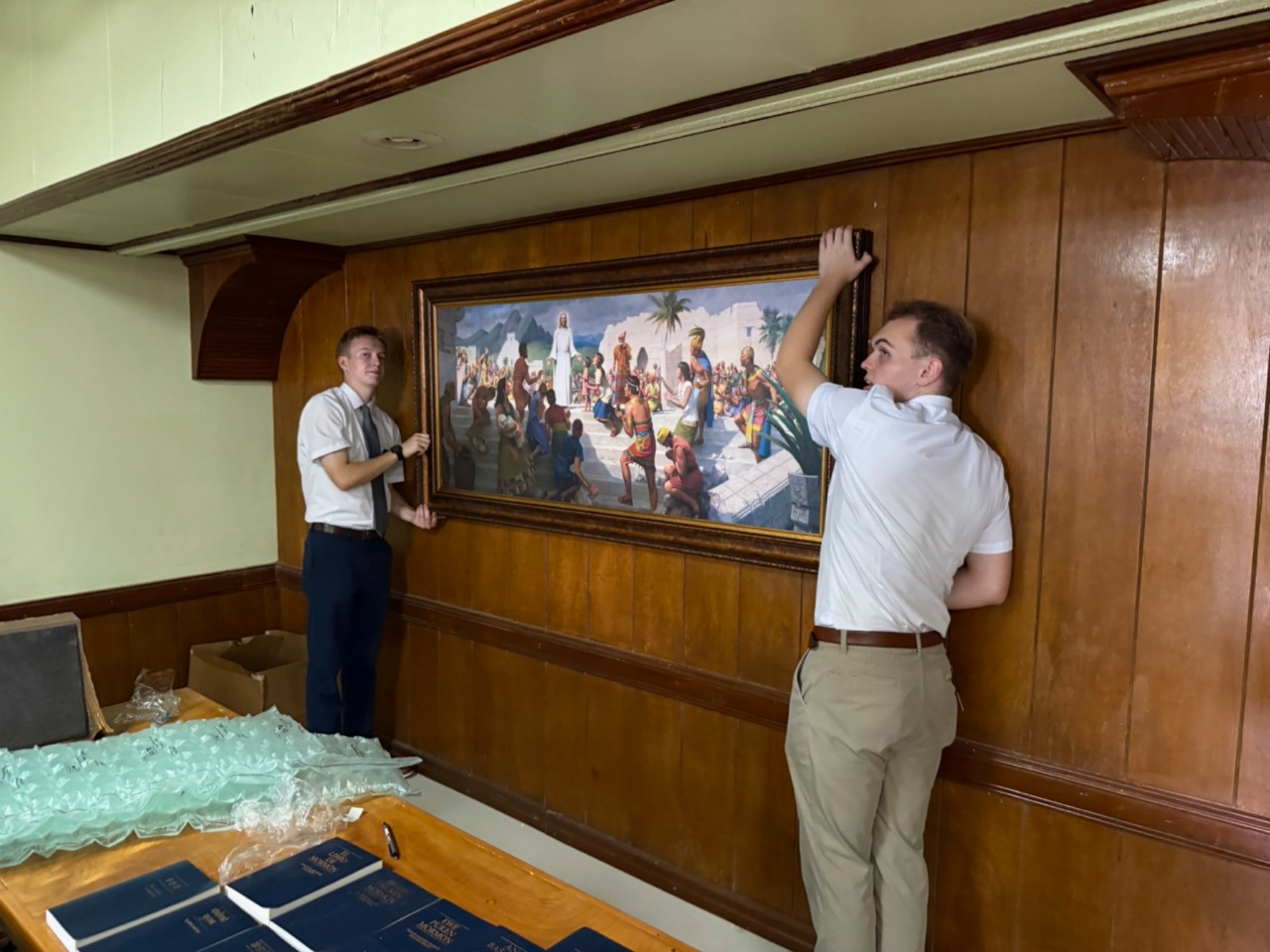 Missionaries serving on Palau found some extra artwork of the Savior along with a podium that had been sitting in a storage closet. After reaching out to the hospital administrator, Darnelle Warswick, an idea formed and the missionaries went to work. On Thanksgiving Day, missionaries hung the artwork in the hospital chapel for patrons to enjoy. They also delivered the podium and cleaned the chapel. One participating missionary, Elder Myers, said, "It was great to see the chapel looking lively again. It felt like there was a renewed connection in that hospital. The only thing I felt during the project was joy!" After seeing pictures of the newly hung artwork, Ms. Warswick said, “It’s so beautiful. We are so grateful”.